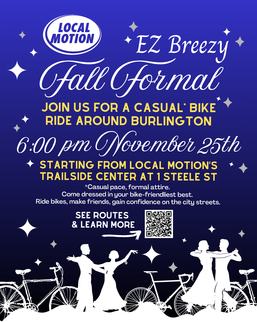 Meet at 6pm at the Local Motion Trailside Center, 1 Steele St, Burlington, VT.